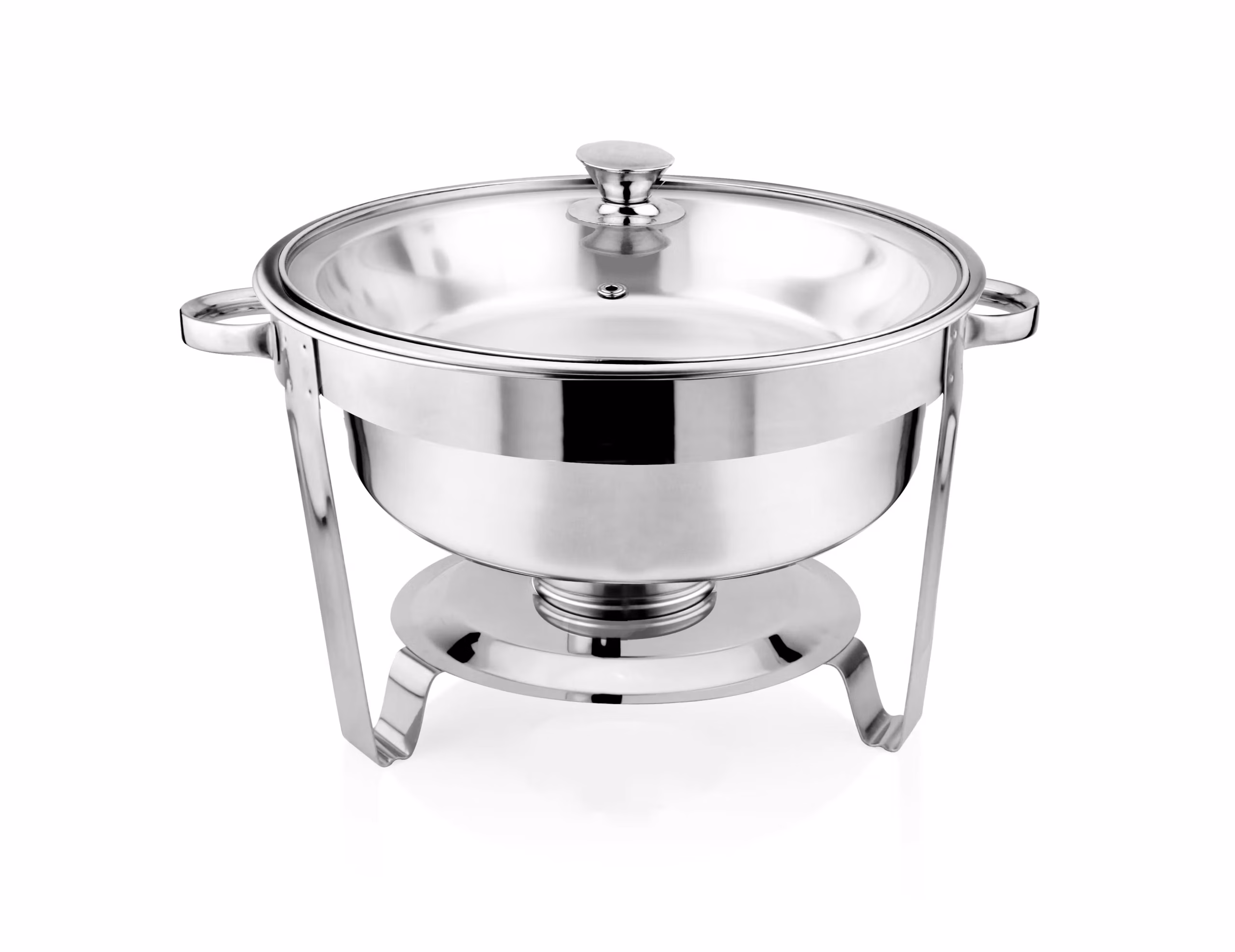 Chafing Dish Edelstahl/Glas 5L – Rund, mit Glasdeckel excl. Brennpaste