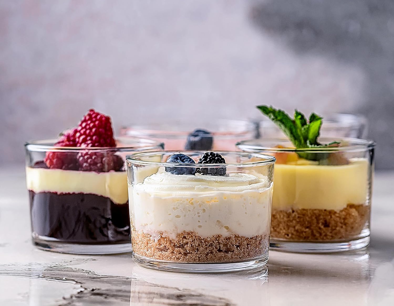 Das klare, hochwertige Glas bringt die Farben, Schichten und Texturen deiner Speisen perfekt zur Geltung. Dank des modernen, minimalistischen Designs fügen sich die Gläser harmonisch in jede Tischdekoration ein – ob bei festlichen Anlässen, Buffets oder dem gemütlichen Abendessen zu Hause.
