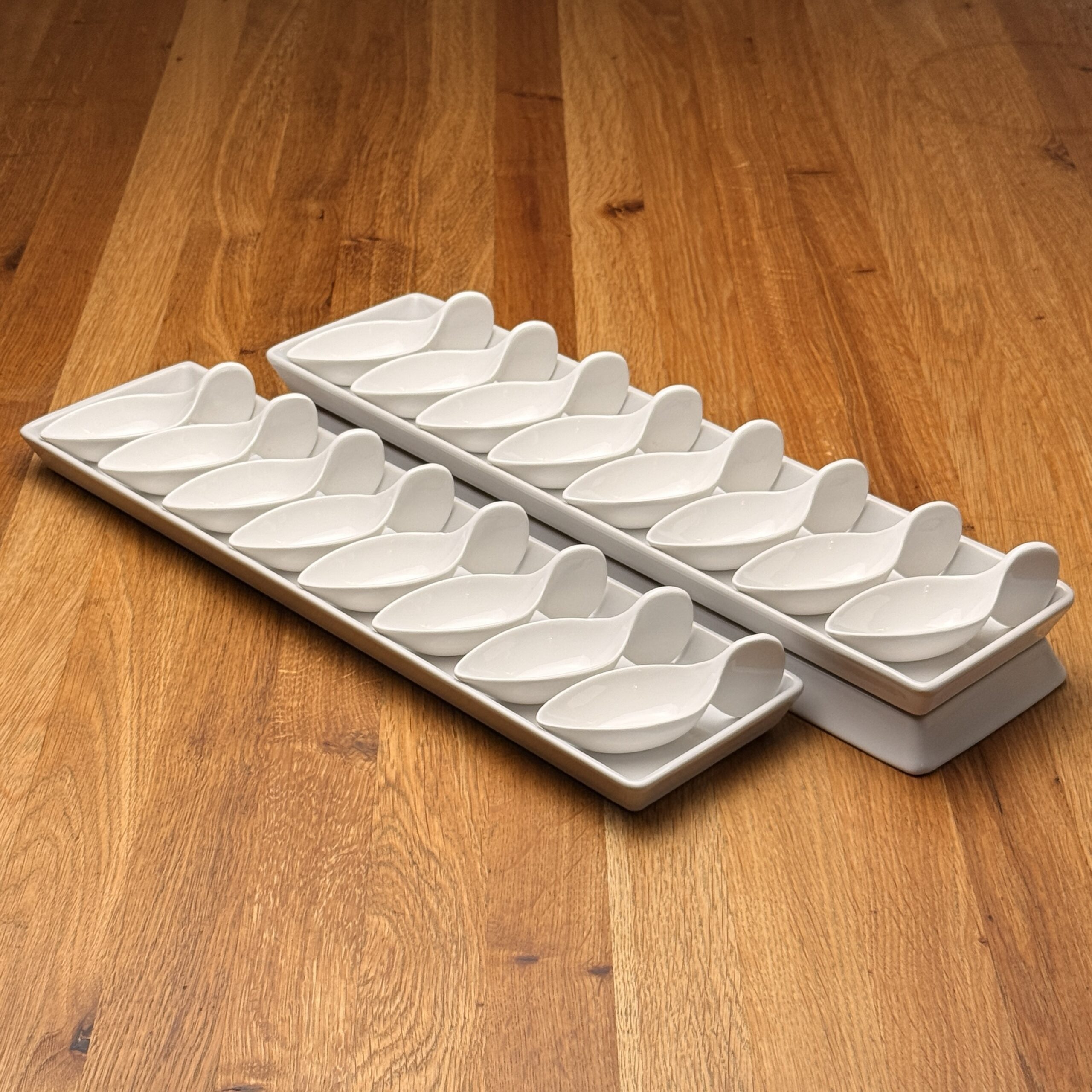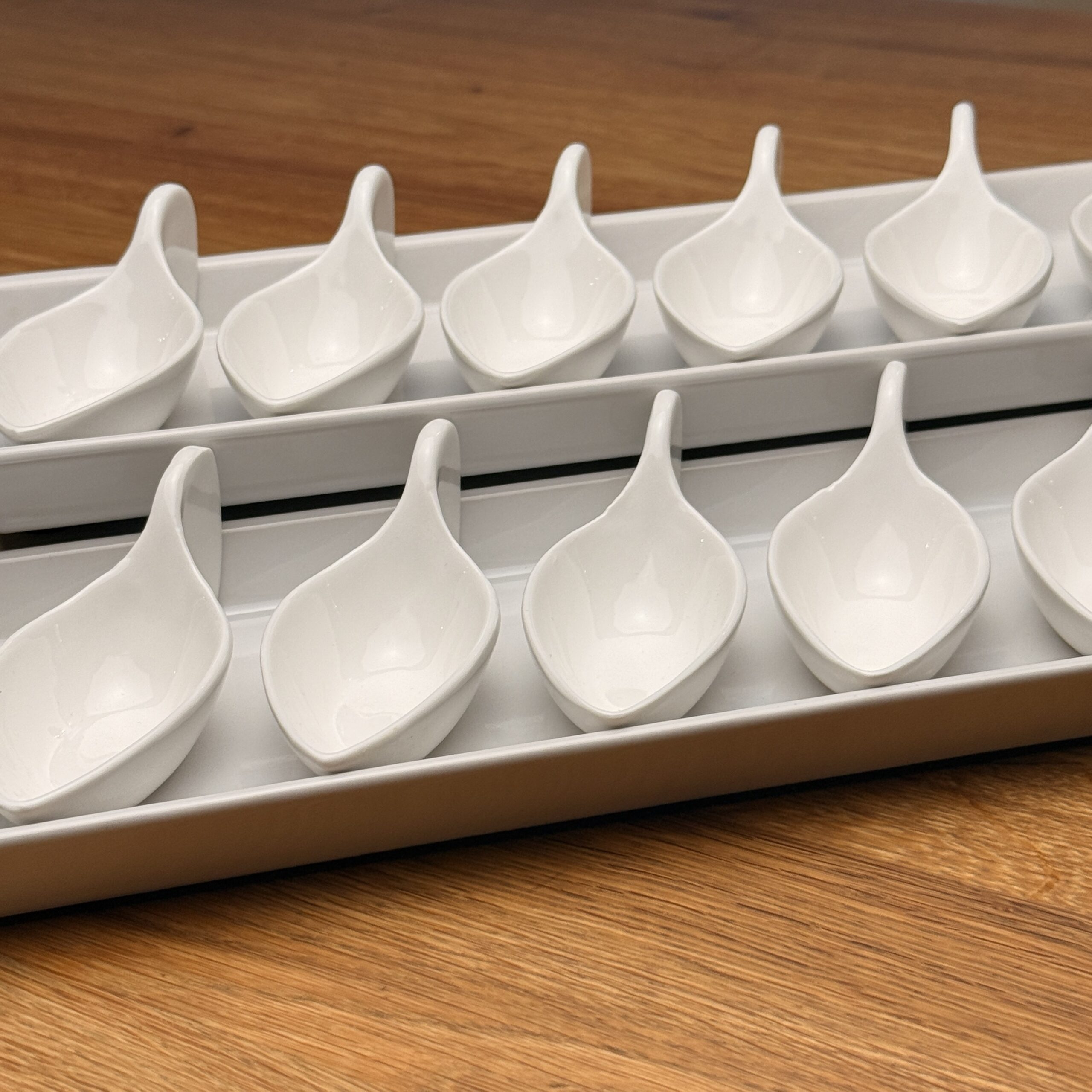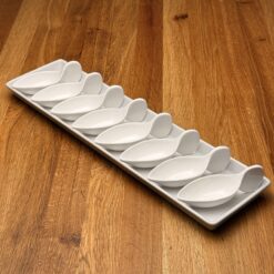 Egal ob Hausparty, Hochzeit, Jubiläum oder ein exklusives Event – das Porzellan Schiffchen macht auf jedem Buffet oder Flying Buffet eine hervorragende Figur. Es eignet sich ideal für Canapés, kleine Snacks, Fischgerichte oder süße Nachtische und verleiht jeder Speise eine ansprechende Präsentation.